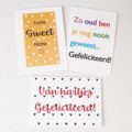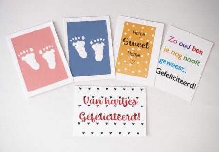 De kaarten zijn 10x15cm, gedrukt op een linnen persing papier. Deze sets met kaarten zijn d.m.v. de druktechniek zeefdrukken bedrukt. Het zeefdrukken is een sjablonen-drukproces/doordruk techniek. Door het zeefdrukraam te behandelen met een lichtgevoelige pasta zetten we de afbeelding vast. Dit doen we door een grote dosis licht op het zeefdrukraam en de basis voor de afbeelding te schijnen met onze belichtingsmachine, welke in een UV vrije ruimte staat. Hierdoor kunnen we zeer gedetailleerde, vrijstaande afbeeldingen te reproduceren. Dit wordt bereikt tijdens het drukproces waarbij de inkt door de zeef wordt geperst met de rakel. Iedere kleurlaag is een apart zeefdruk raam en wordt los gedrukt. Omdat wij gebruik maken van mallen waarin de te bedrukken producten steeds op dezelfde plek liggen is dit proces heel goed zelfstandig uit te voeren door onze cliënten.