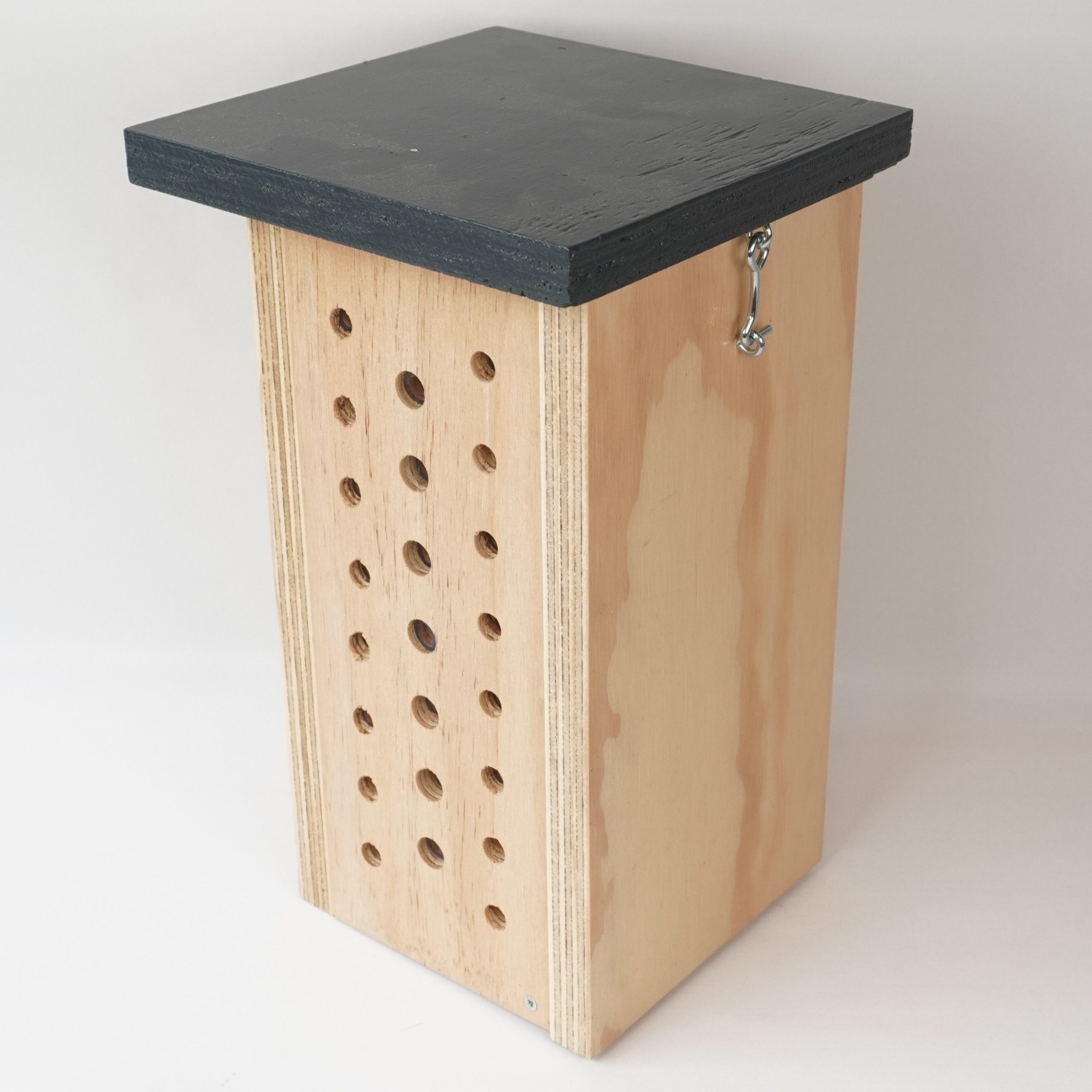 De metselbijen zijn solitaire bijen die in de periode van maart tot en met augustus zorgen voor de natuurlijke bestuiving van uw tuin. Ze leggen eieren in de opening, waarna ze de gaten dichtmetselen. Na een jaar verbreken de jonge bijen de verzegeling en vliegen de wijde wereld in!