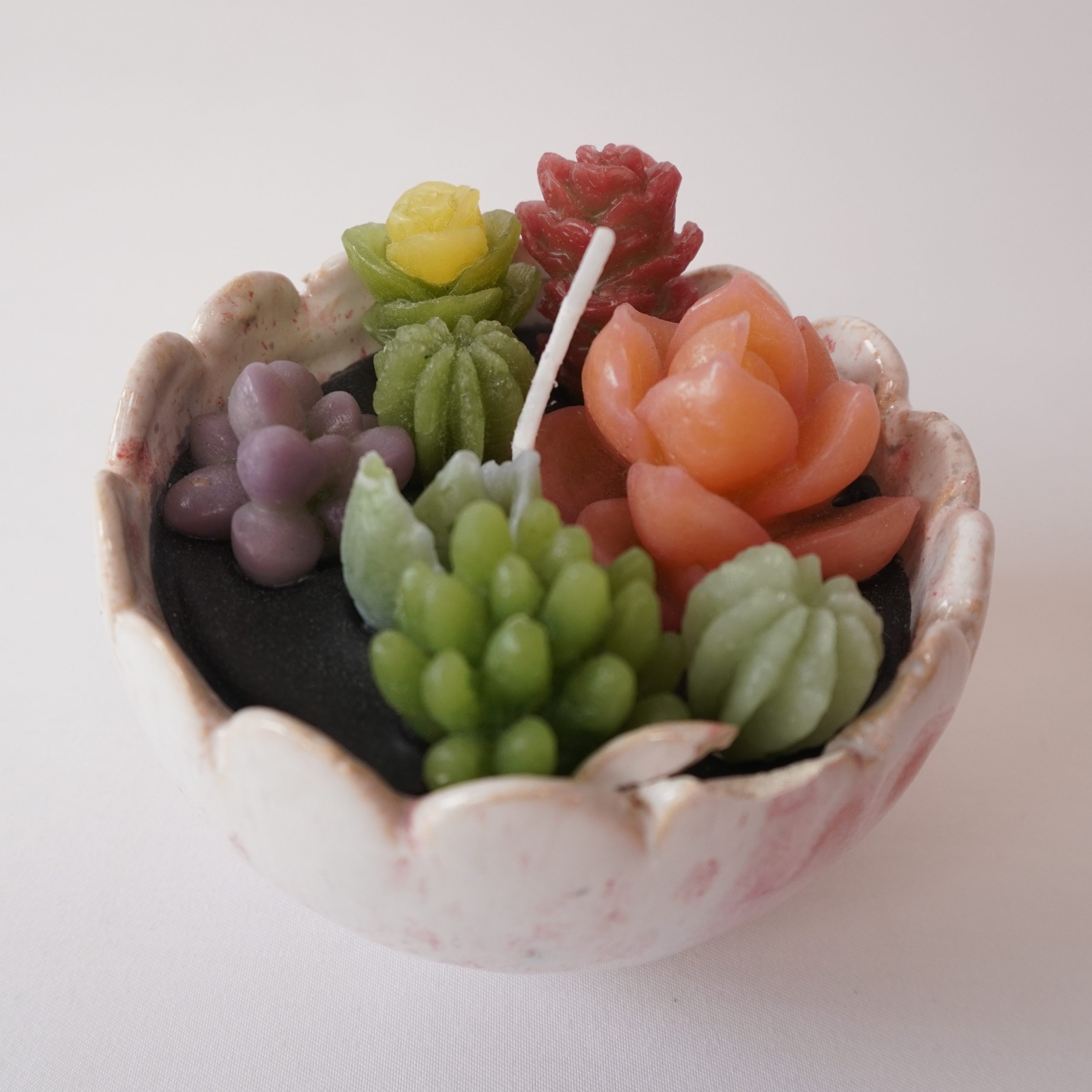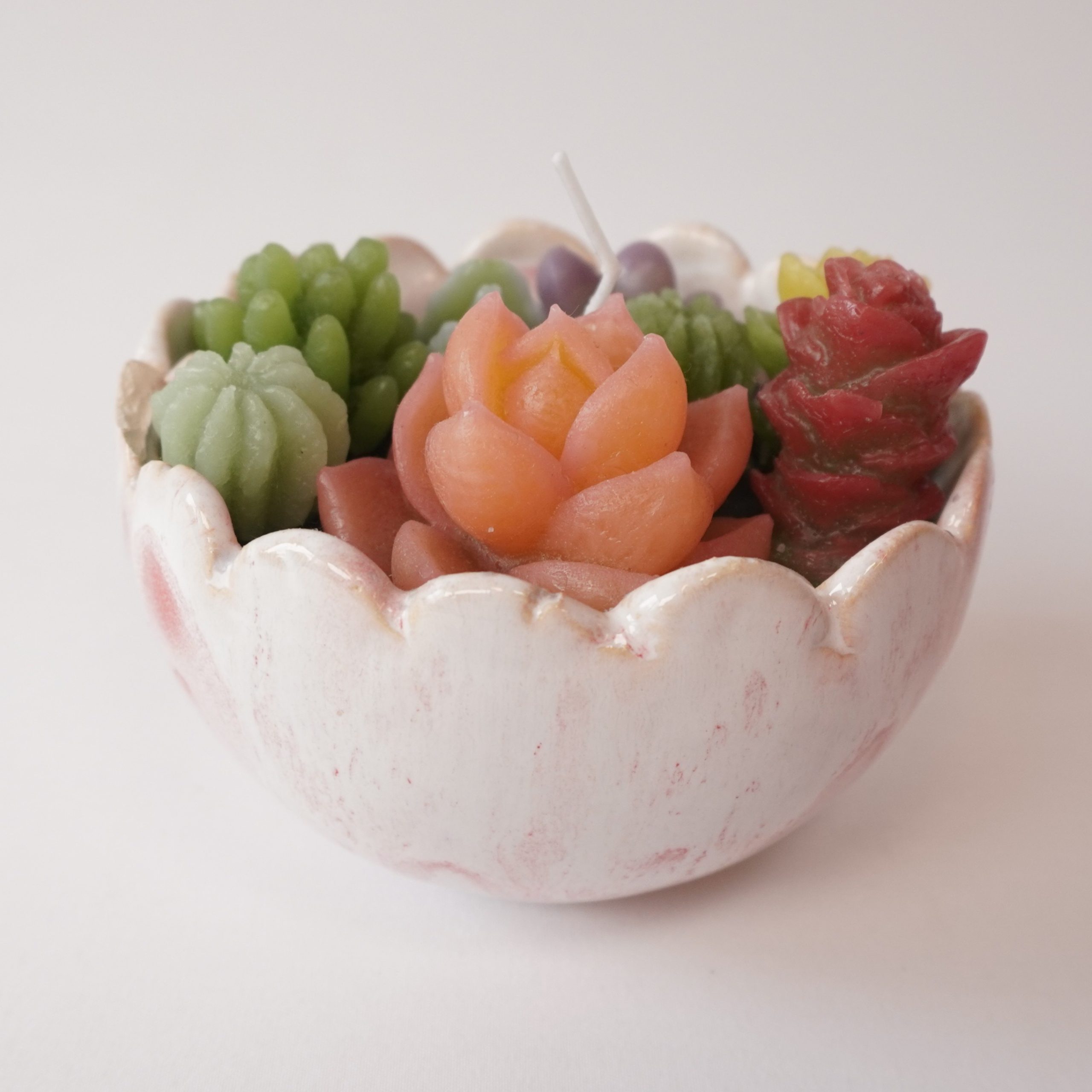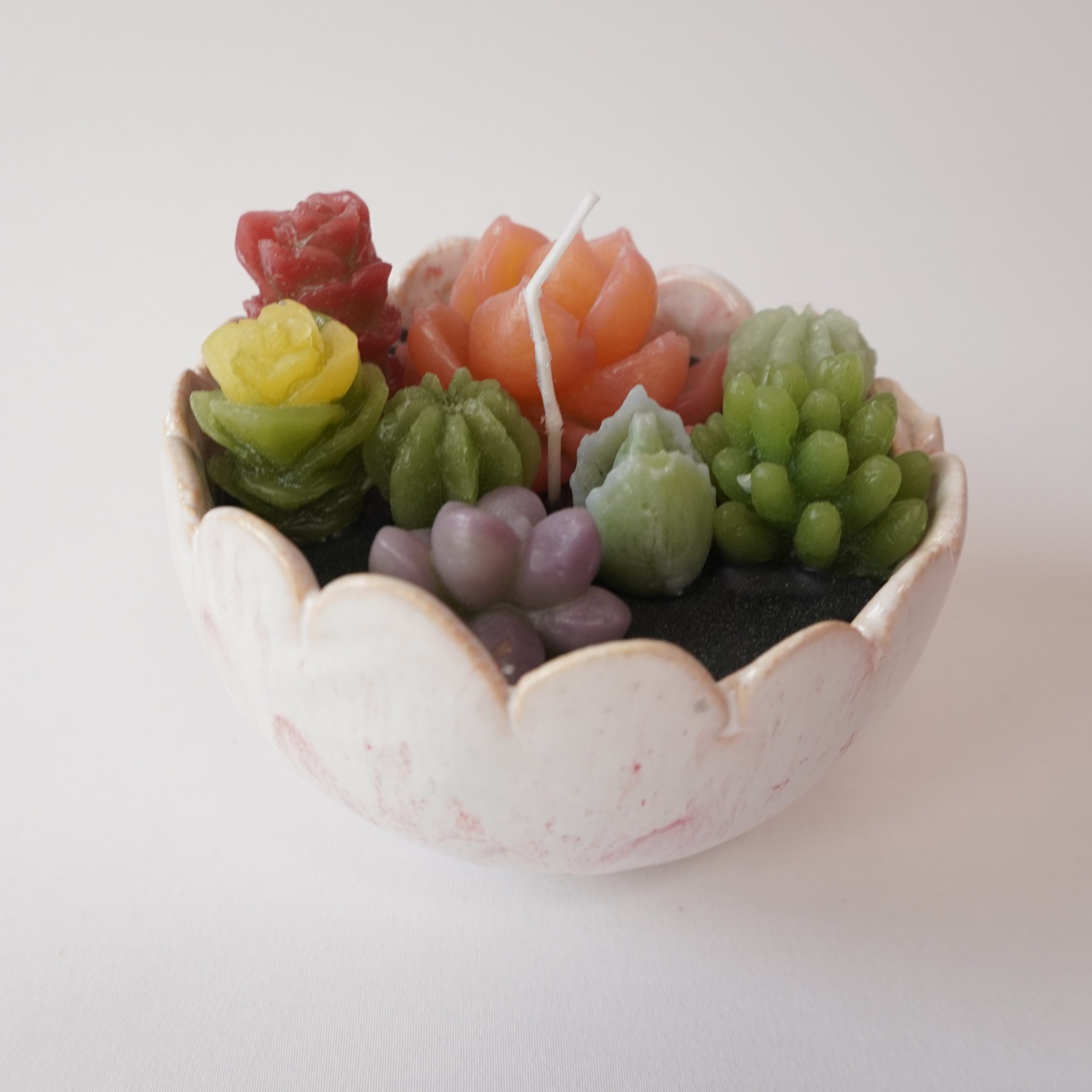 Op de Keramiekgroep van Bisnis wordt het keramiek bakje van het kaarstuintje met behulp van mallen door cliënten zelfgemaakt. Volgende stap is glazuren. Daarna gieten cliënten op de Combigroep zelf de was in malletjes in allerlei verschillende kleuren en maten, zodat de plantjes ontstaan. Het bakje wordt met kaarsvet in aardekleur gevuld. Daarna worden de plantjes ‘geplant’ en vastgezet met een extra laagje was in tuinaardekleur.