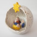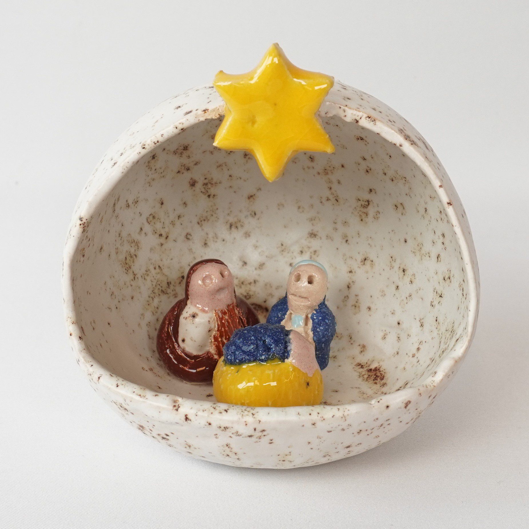 Een schattig klein kerststalletje gemaakt van keramiek.