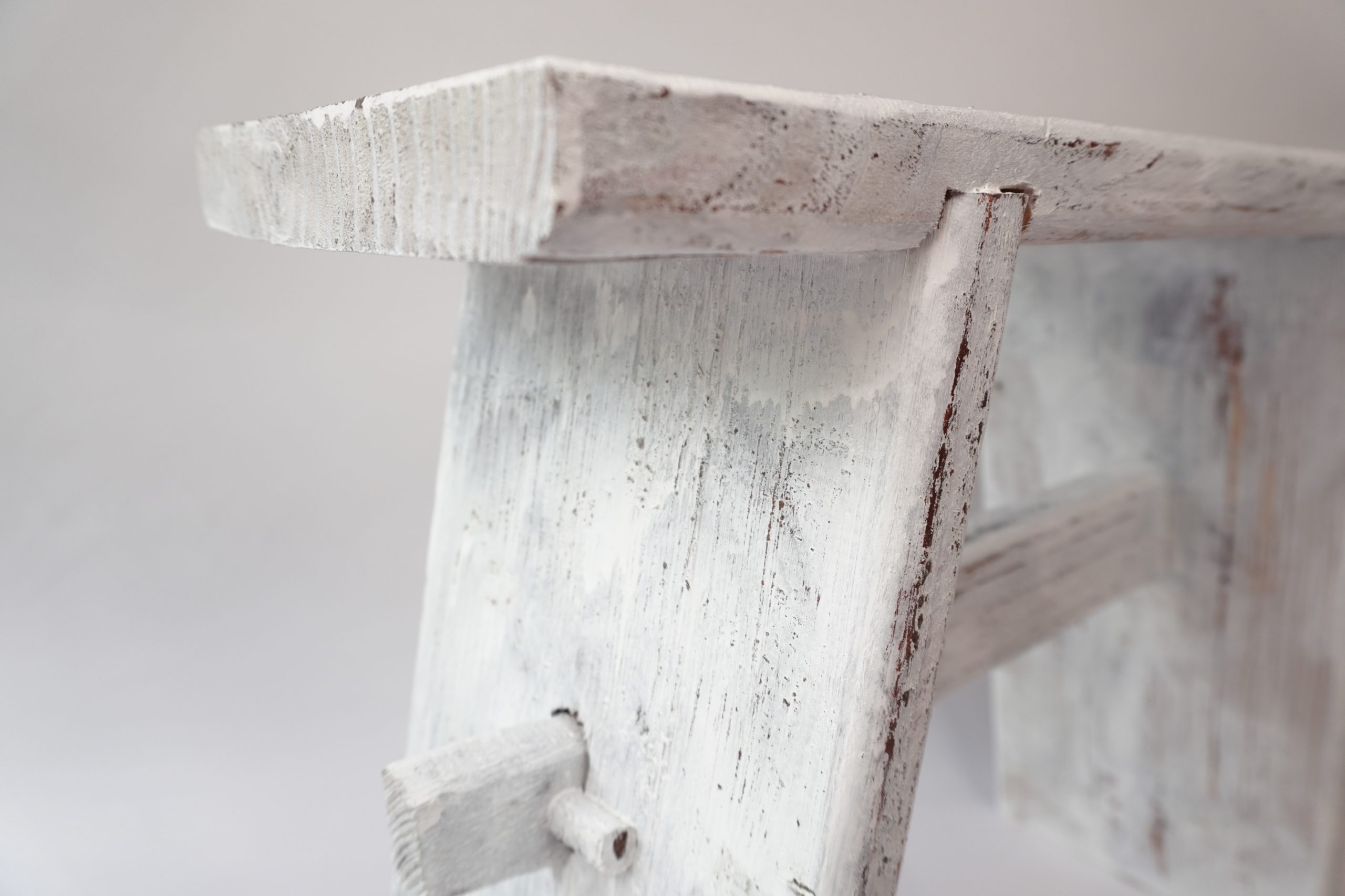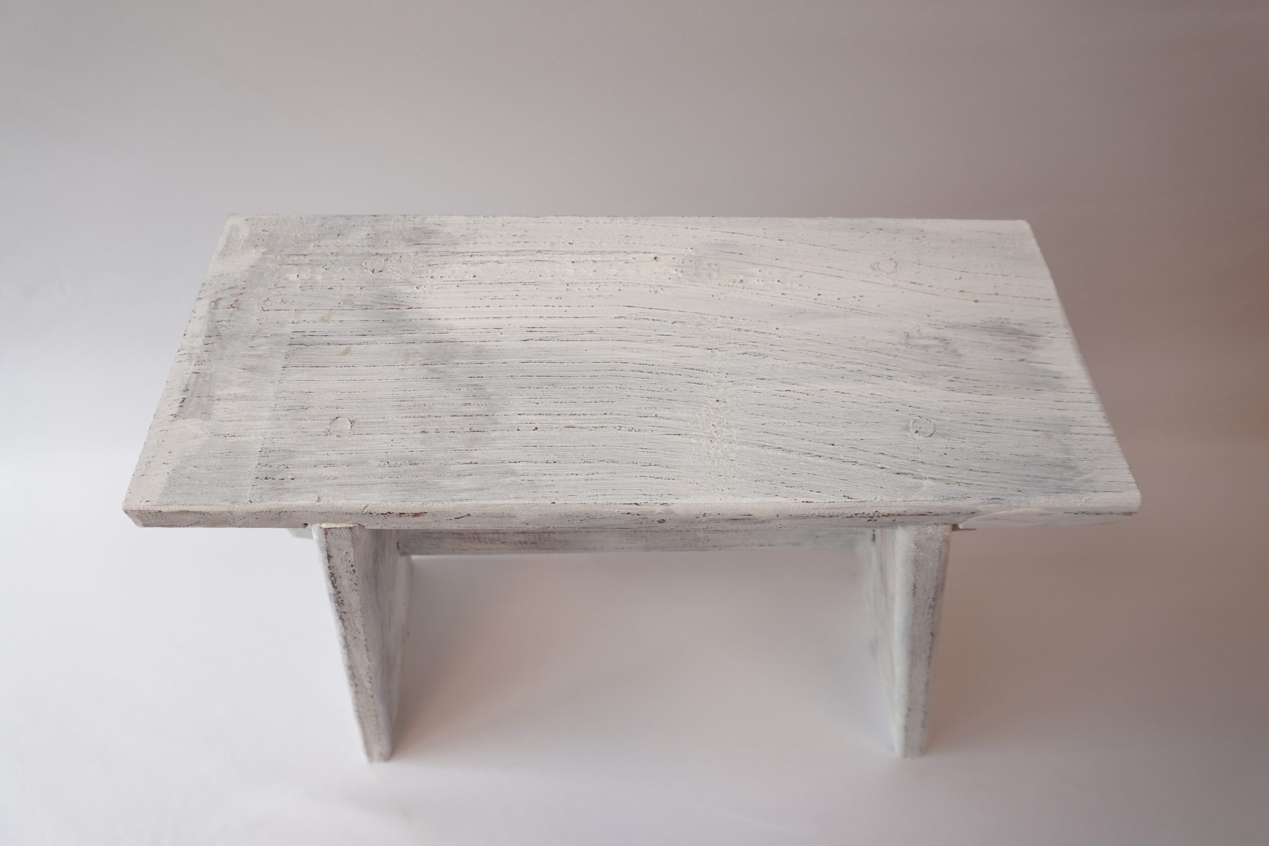 Het krukje is gemaakt van massief hout (vuren) en is in 3 kleuren te koop. (grijs wash, blank en deze is white wash)
