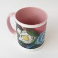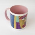 De bekers zijn gemaakt van stevig keramiek, wat ze zowel praktisch als duurzaam maakt voor dagelijks gebruik. Ze zijn rondom bedrukt. De binnenkant en het oor hebben een roze kleur.
