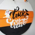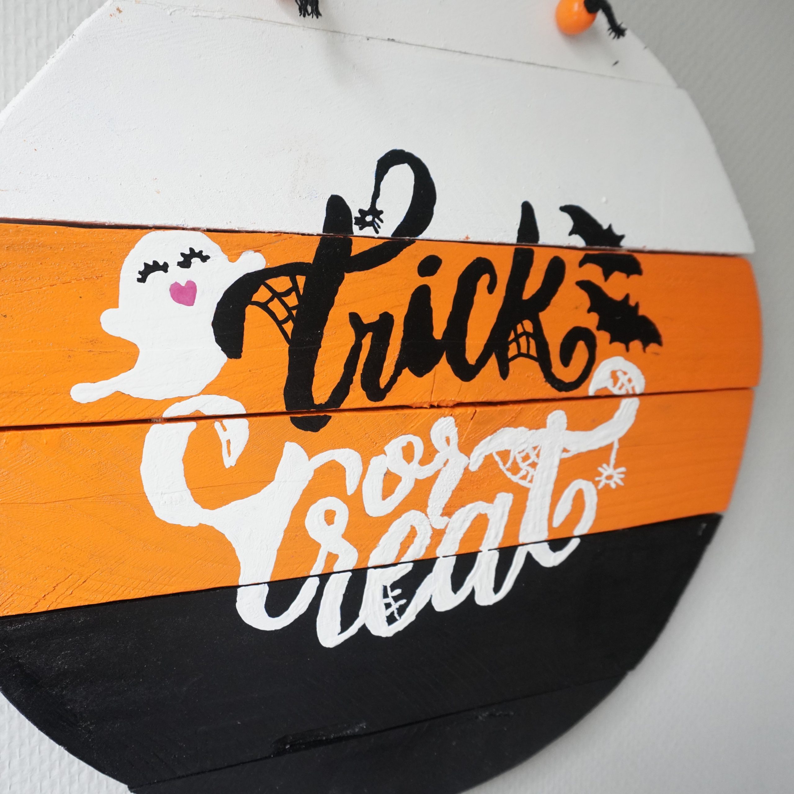 Dit bord heeft geen snoepjes nodig, maar wel een flinke dosis Halloween-sfeer. Hang hem aan je deur of muur en je huis is meteen klaar voor Trick or Treat. Na Halloween kun je hem natuurlijk ook nog gebruiken als decoratief bord voor een ander creatief doel.