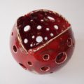 Handgemaakte bol van keramiek met een patroon van gaten, afgewerkt met een glazuurlaag.